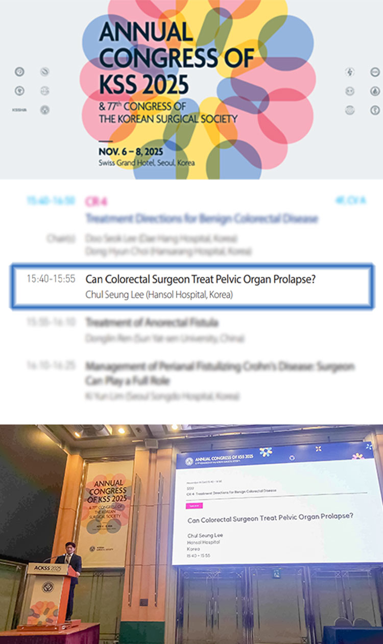 발표주제 : “Can Colorectal Surgeon Treat Pelvic Organ Prolapse?” 골반장기탈출증 환자의 수술적 치료